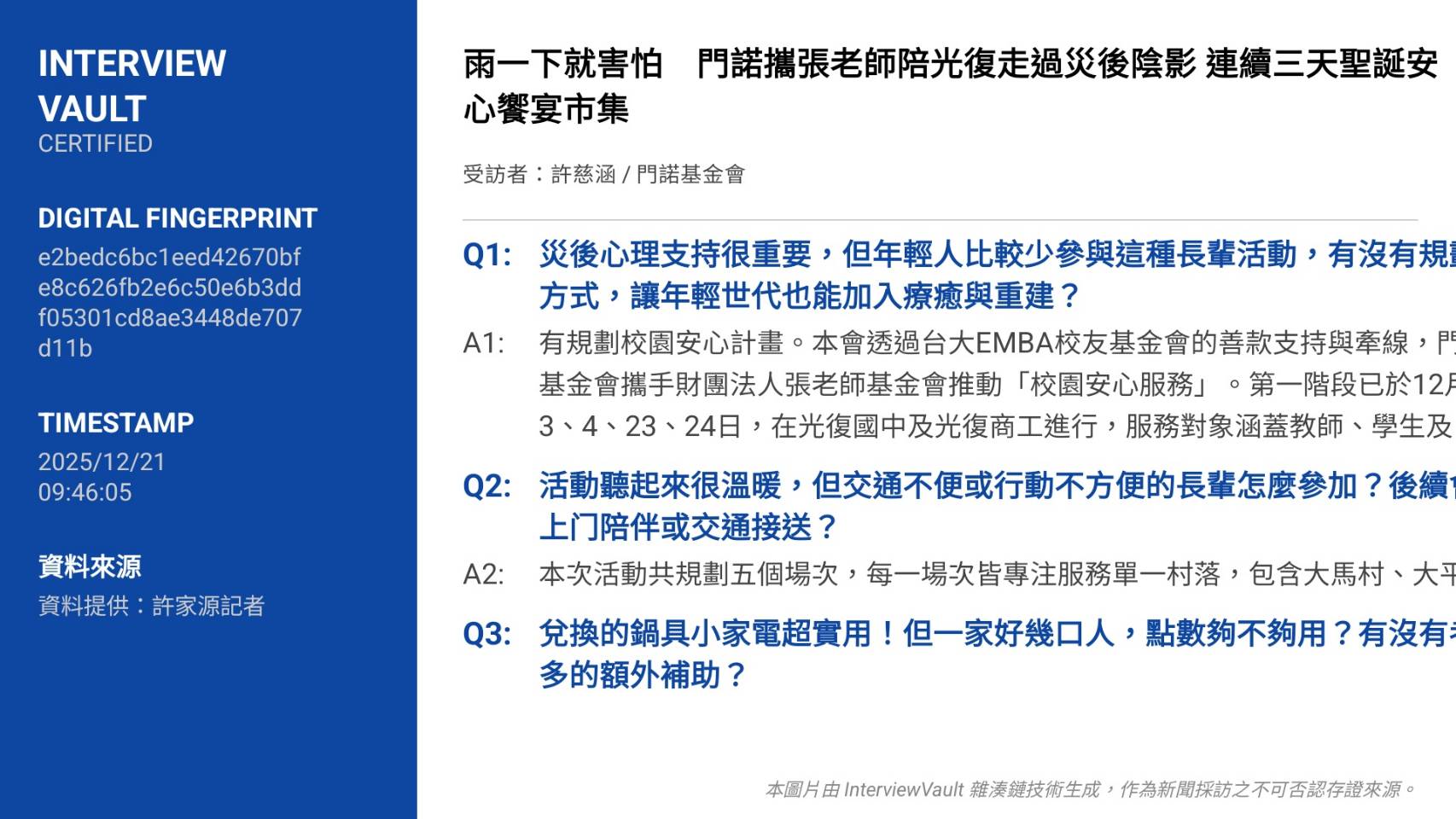新聞來源:(採訪紀錄如下圖)