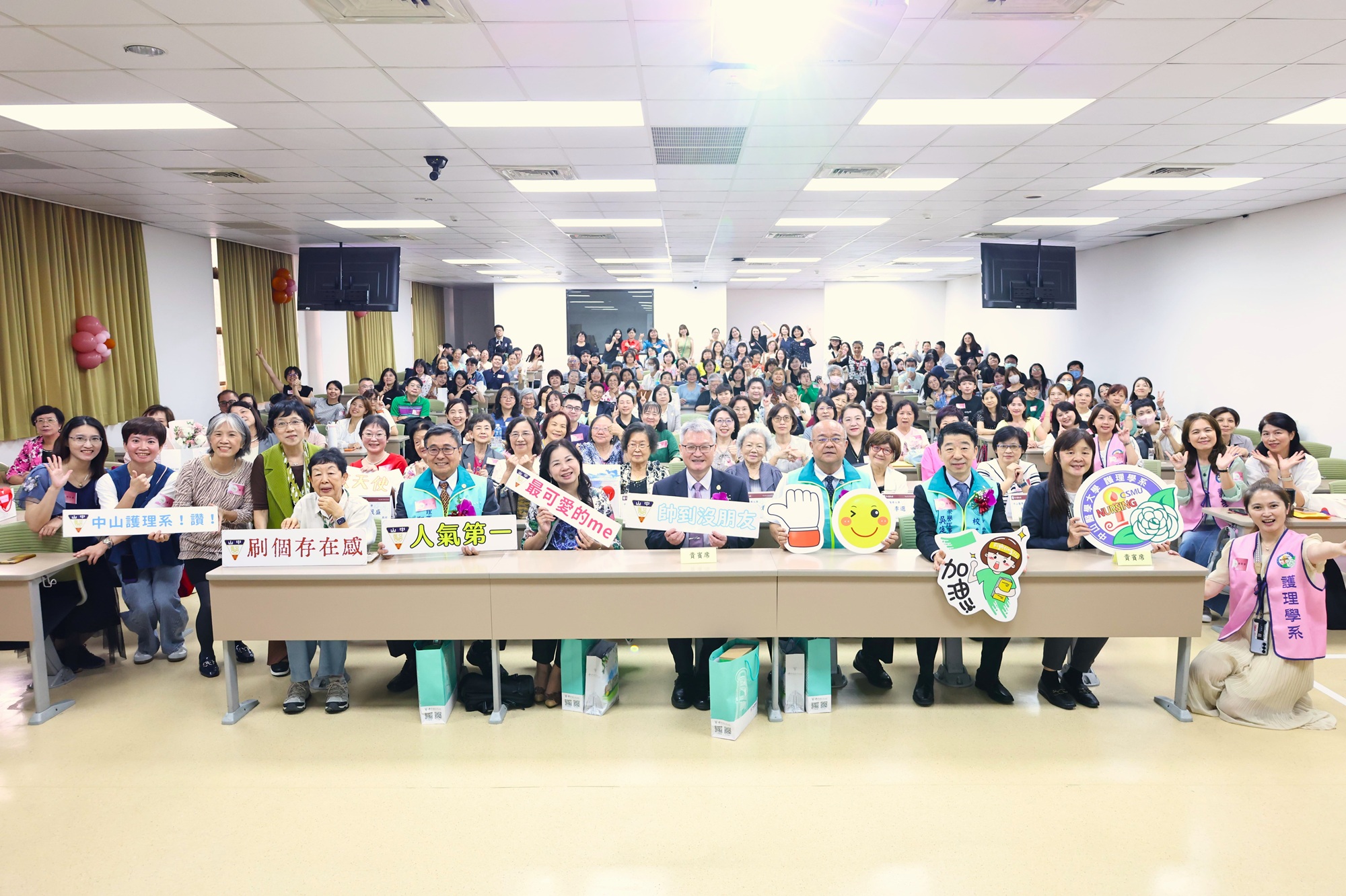 校長黃建寧指出,學校在教學、研究與永續發展上持續精進,每年論文近千篇、競賽屢獲佳績,連續兩年有八位教師入選「全球前2%頂尖科學家」。未來將以「智慧醫療」與「綠色轉型」為核心,預計2050年達成校園碳中和,培育兼具專業、人文與國際視野的醫療人才。護理系系慶則吸引超過200位系友回娘家,校友高喊「我中山、我驕傲」,展現強烈的校園認同與情感連結。