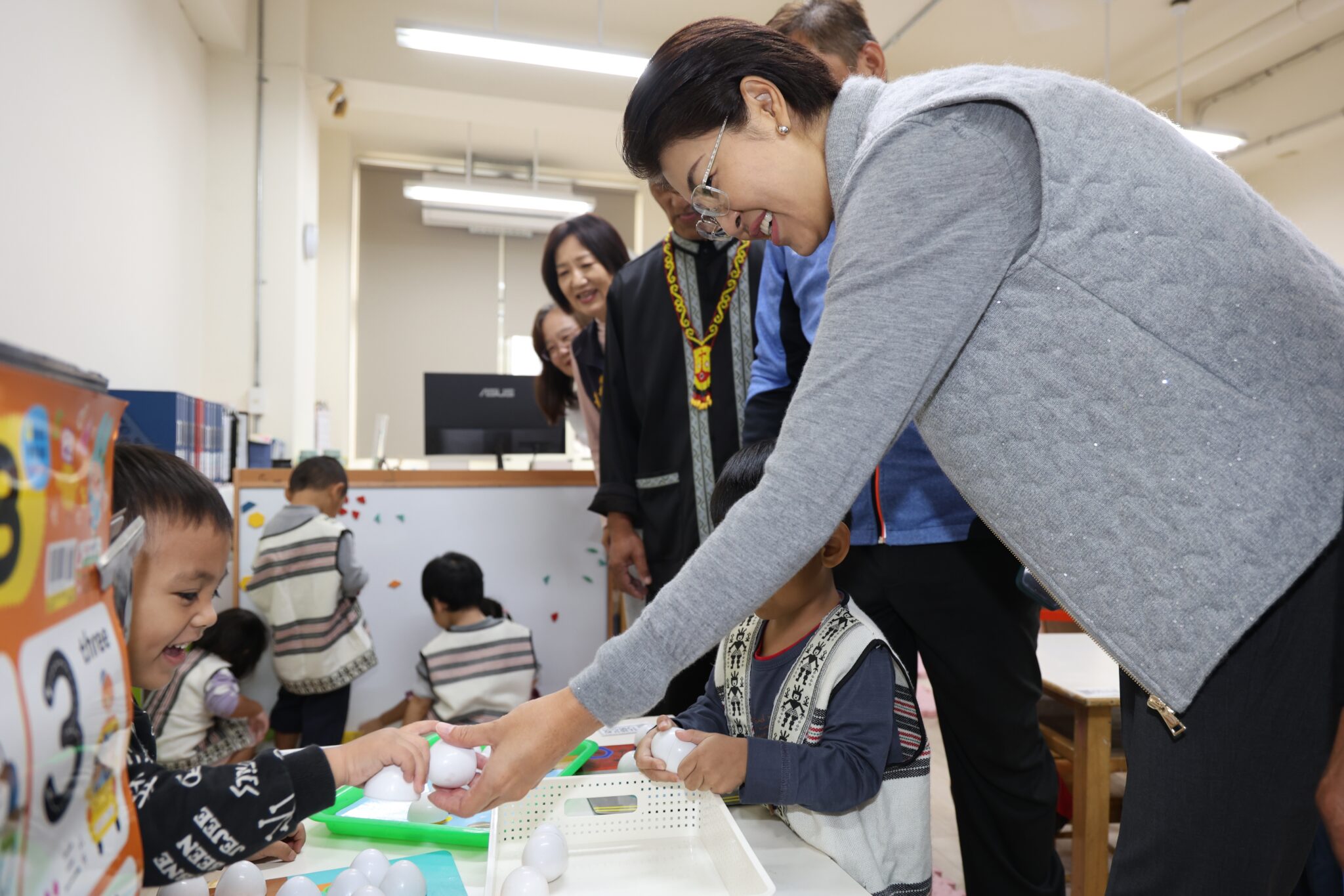 許縣長表示,潭南部落的幼兒人數不斷成長,為提供孩子更優質的學前教育環境,重建後的幼兒園針對採光、電梯、廁所及教室設備進行全面升級,務求設施完善完整,讓部落家長能夠放心將孩子送來學習。