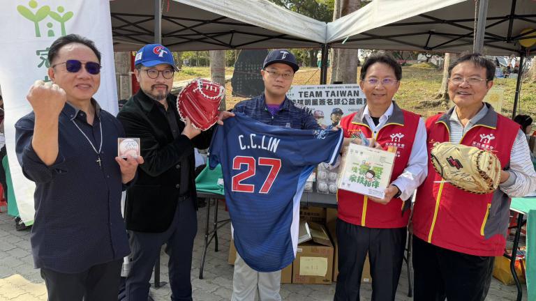 ▲長期支持彰化家扶的建築師郭信志,號召林家正、林子偉等多位棒球明星提供簽名球,將義賣所得全數捐出關懷弱勢家庭。(圖╱記者孔亮云翻攝)