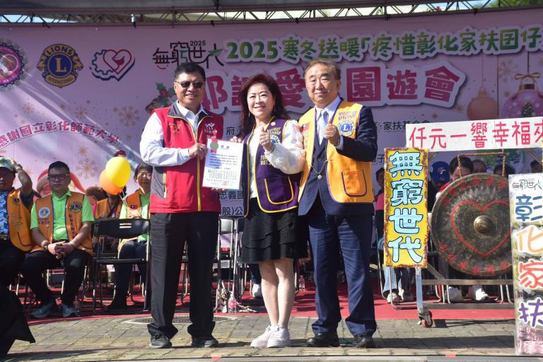 叮叮噹~叮叮噹~耶誕腳步即將來臨前夕,由國際獅子會300D 1區總監蔡沼玲帶領彰化縣成功國際獅子會、冠穎國際獅子會、彰師大國際獅子會及忠義國際獅子會等分會,與彰化縣彰工慈善會在彰師大寶山校區聯合主辦彰化家扶「2025無窮世代~寒冬送暖疼惜家扶囝仔耶誕愛心園遊會」。今年活動以「助貧童 看見改變的未來」為主題,邀請縣內近五千名扶助兒童及家人齊聚一堂感受社會溫情。