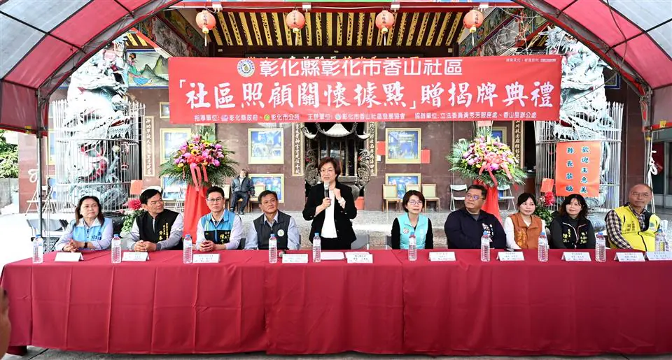 彰化縣在彰化市香山社區成立第371個社區照顧關懷據點,彰化縣長王惠美於今(27)日上午前往贈揭牌慶賀。據點辦理認知益智桌遊、創意手作DIY、體適能肌力訓練及健康衛教講座等樂齡活動。王縣長表示,感謝香山社區發展協會理事長林駿承、總幹事張智閔與社區幹部志工團隊以及香山里長許春郎的無私奉獻,讓長輩在舒適環境裡悠遊自在,積極營造友善空間,許給長輩一個幸福安全的未來。