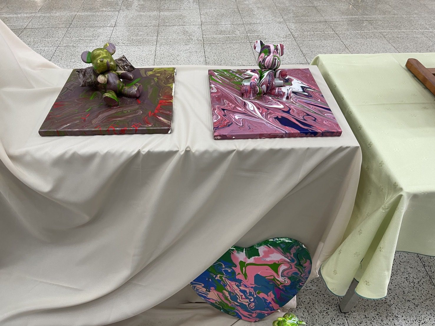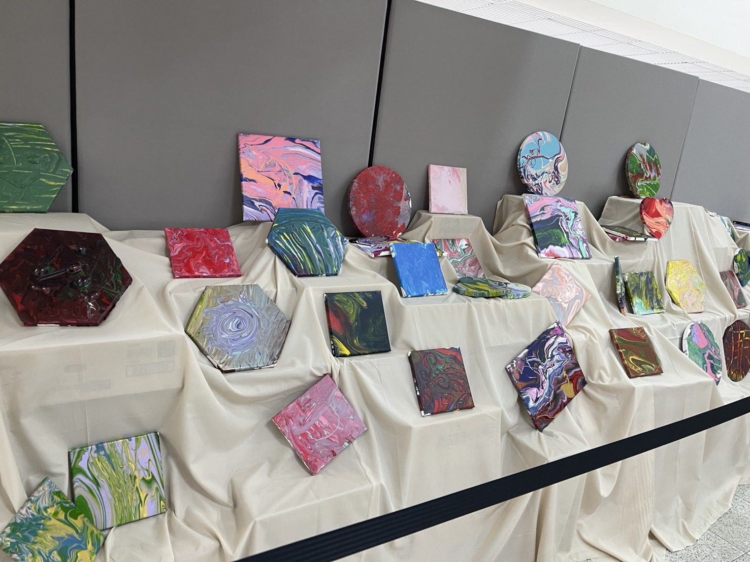 展覽由屏科大社工系攜手財團法人屏東縣私立迦南身心障礙養護院與精忠育幼院共同完成,作品多出自服務對象與師生、社工與老師的共創歷程,讓校園公共空間成為一處可以停下來、好好看見人的地方。