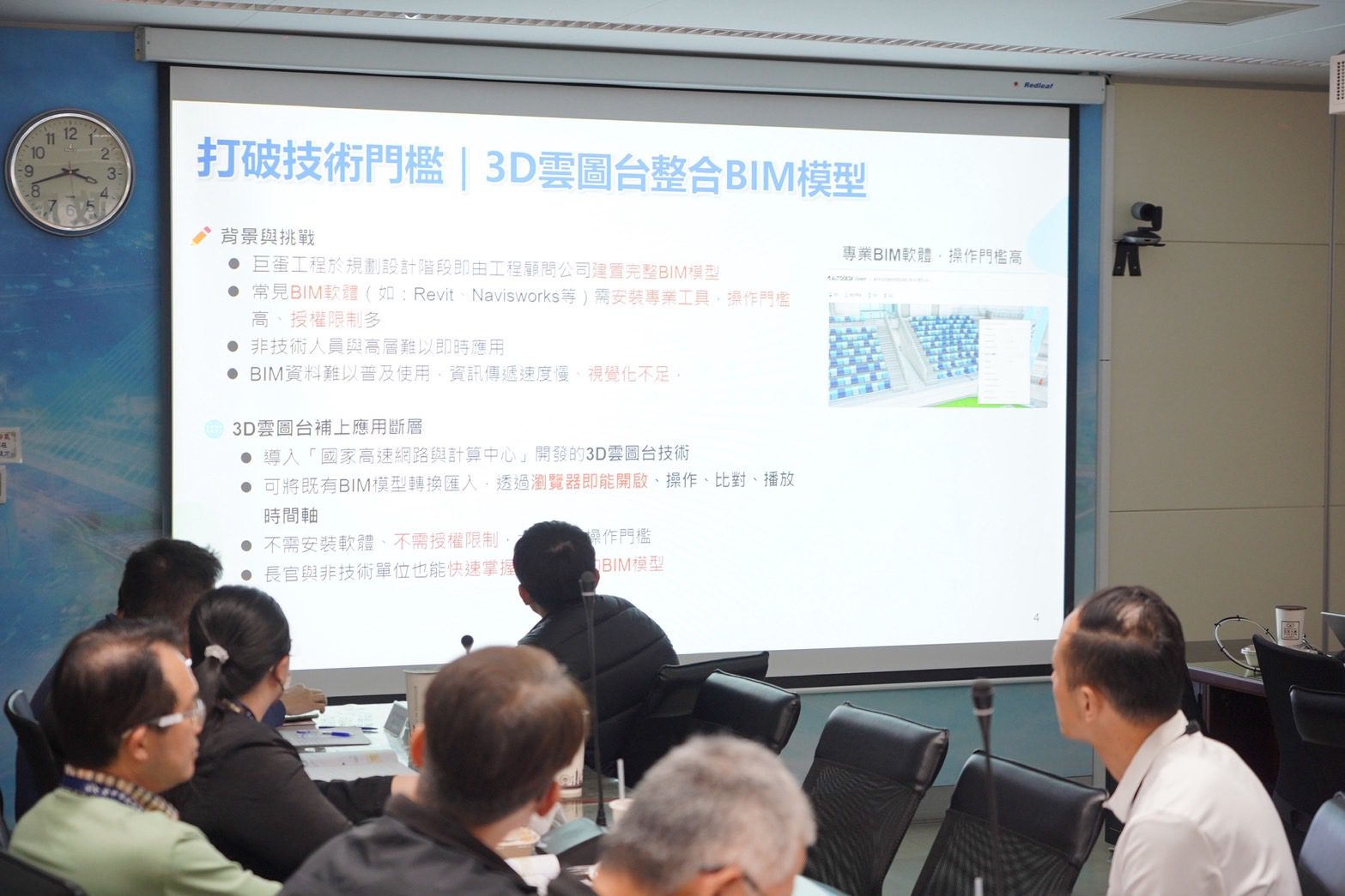建設局說明,此次與國研院國網中心合作推動「建置公部門多維資訊應用展示系統開發採購案」,成果說明會由虛實整合與數位孿生組長楊安正率領委託團隊與相關同仁共同展示建置成果;另有巨蛋開發團隊,包括承喬國際建築師事務所、九典聯合建築師事務所、麗明營造股份有限公司、擎邦國際科技工程股份有限公司等,以及市府運動局與住宅發展工程處共同參與。會中透過技術交流與軟硬體資源分享,期盼未來持續深化合作關係。