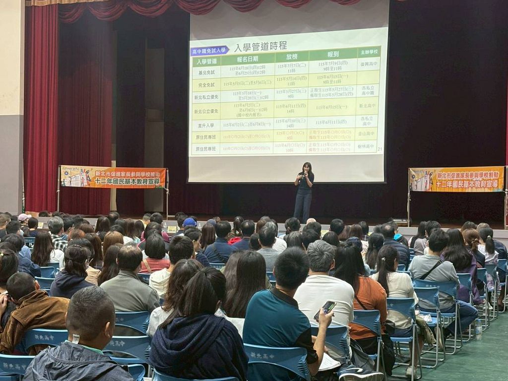 本次宣導活動由新北高中承辦,新北市中小學家長會長協會及中華未來學校教育學會協辦,規劃三大核心主題透過三大主題解讀升學趨勢,包括「基北區多元入學管道」、「高中職108課綱與學習歷程檔案」、「新北市教育資源分享與運用」。會中由新北高中柯雅菱校長、石碇高中許欣霖校長、金山高中陳玉桂校長解說最新升學趨勢、學習歷程檔案準備重點及校際資源運用策略,並透過Q&A交流,讓家長與學生更清楚升學方向。
