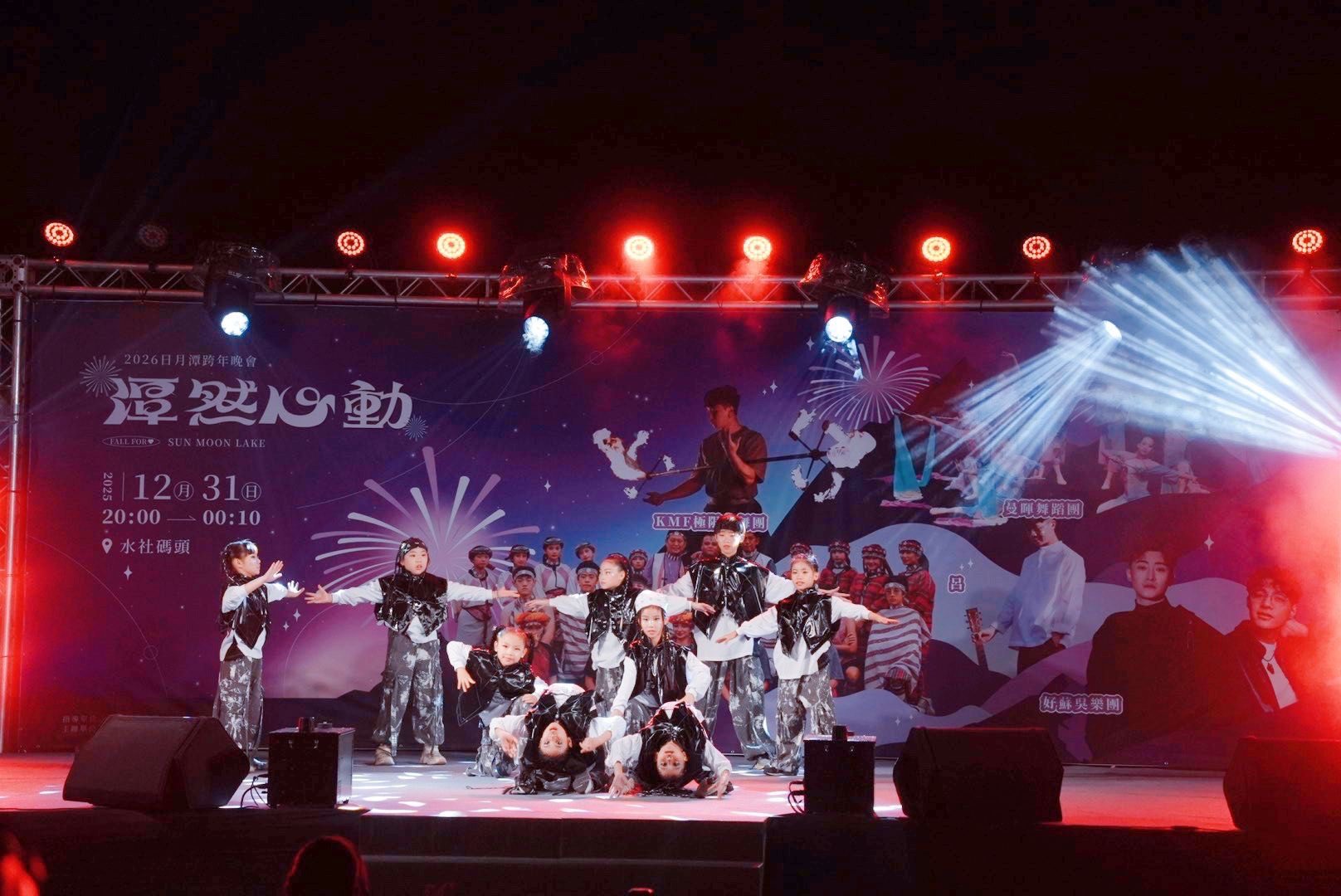 交通部觀光署日月潭國家風景區管理處於114年12月31日晚間舉辦「2026日月潭跨年晚會《潭然心動》」,於水社碼頭及伊達邵碼頭廣場熱力登場,現場在多組在地藝文表演團體及著名樂團陪伴下,與遊客一同溫馨度過114年最後一夜,於午夜12時雙邊同步施放長達360秒的煙火秀,吸引超過1萬2千名遊客在燦爛的煙火中迎接2026年到來。 日月潭是國際知名觀光景點,不僅四季皆具亮點觀光遊憩資源活動,在每年的最後一夜也精心安排優質活動,邀請民眾一同夜遊日月潭。本次跨年晚會,水社碼頭由曼暉舞蹈團、歌手-呂、喜裂克文化藝術團等輪番演出;伊達邵碼頭也不惶多讓,張家綸小提琴老師、音樂盒室內樂集、也就醬子等多組團體接力登台,雙邊碼頭更特別安排特技火舞演出,讓現場氣氛持續升溫,水社碼頭壓軸由好蘇吳樂團帶來精彩演出,伊達邵碼頭則由原民歌手全世煌演唱,帶來多首經典曲目,讓遊客沉浸在音樂與歡笑中。 除了精彩的舞台演出節目外,還安排有內心狂吶喊(中獎者)能不能是我的摸彩活動(當日於日月潭周邊消費滿新臺幣300元,即可獲得摸彩券一張),最大獎為IPHONE手機。隨著午夜到來,倒數聲後璀璨高空煙火於水社碼頭及伊達邵碼頭同步綻放,照亮靜謐潭面,為全台灣唯一跨潭雙點煙火施放,最後以黃金雨煙火包圍全場,山光水色在煙火的點綴化作最浪漫的新年夜景,現場驚呼連連,氣氛熱烈非凡,成爲晚會的高潮。 交通部觀光署日月潭國家風景區管理處表示,日月潭將持續推動「永續旅遊」及「智慧觀光」,落實環境與旅遊上的平衡,提供遊客多元旅遊面向,如騎乘國際評選為全球十大最美自行車道、搭乘飽覽群山美景的纜車,或搭船遊湖環視湖光山色,於四季辦理各種亮點活動,從春季賞「櫻」、夏季賞「螢」、秋季賞「音樂花火」、冬季賞「落羽松」,讓旅客們可於不同季節,以不同的旅遊主題與視角探訪日月潭之美,同時提供旅客更安全、便利且舒適的旅遊環境,也歡迎民眾持續關注相關活動訊息,邀請大家在新的一年走進日月潭,感受湖光山色與節慶氛圍。 圖/日月潭國家風景區管理處提供