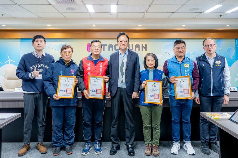 桃園市長張善政31日上午主持市政會議,接受環保局呈獻環境部「114年全國環保志(義)工群英會」競賽特優獎項。張市長表示,桃園能夠連續兩年在全國競賽中榮獲最高榮譽,充分展現本市環保志(義)工長期深耕基層、穩定投入的成果,也是團隊合作與制度化推動的具體展現。張市長指出,環保志(義)工是城市環境治理的重要支柱,透過環保局與各里長系統化組織、規劃與培力,讓志工能量得以持續累積並有效發揮,此次脫穎而出實屬不易,值得高度肯定。期勉環保局與志工夥伴再接再厲,持續以行動守護環境,共同打造永續、宜居的桃園。