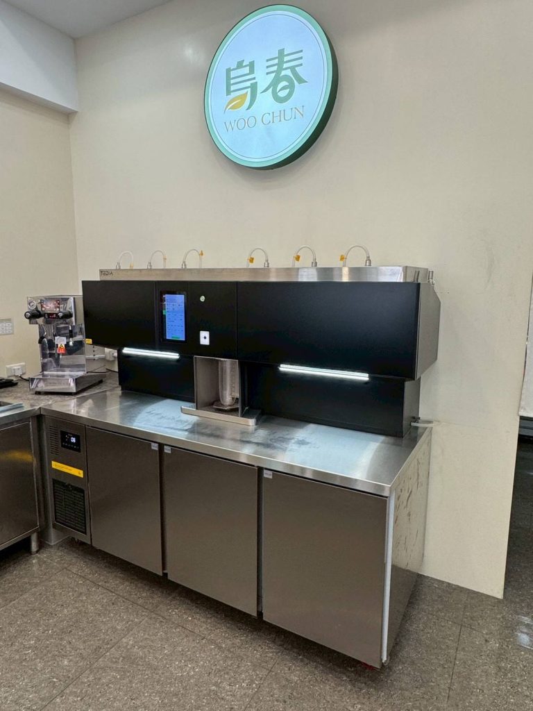 烏春以煮茶機煮茶,不失溫,提取茶葉的香氣底蘊。使用科技智能機,將每一杯茶穩定的送至客人手中。並獨創「萃乳」工法,獨創「萃乳」工法:以低溫慢萃結合分段乳化技術,將烏龍茶的礦質骨架、與乳的柔滑凝練成一杯茶、清透如泉的質地。一口入喉,是茶,卻有乳感;是醇,卻無負擔——純茶成乳,回歸本質。