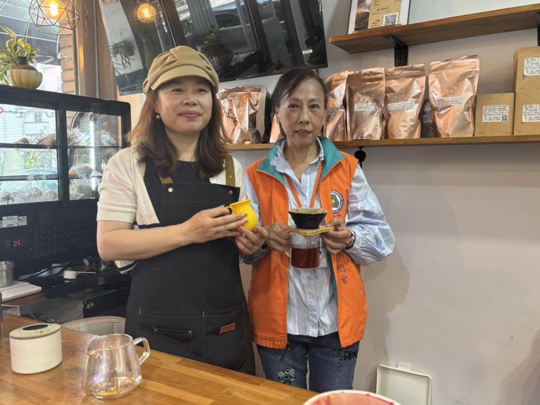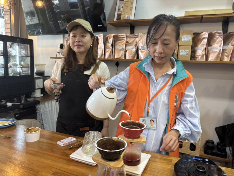 ▲負責人王業廷與店長小靜位客人手沖咖啡。(圖/高婕)