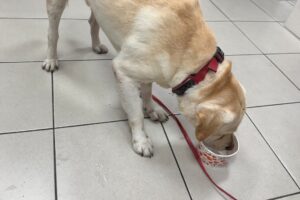 警方到場時,未見飼主在旁,只見約30公斤重的拉布拉多站在車陣中不知所措,因長時間暴露於危險環境,全身不停顫抖,模樣令人心疼。為避免發生交通事故及犬隻受傷,兩名員警當機立斷,合力將拉布拉多抱上巡邏車,先行安置確保安全。