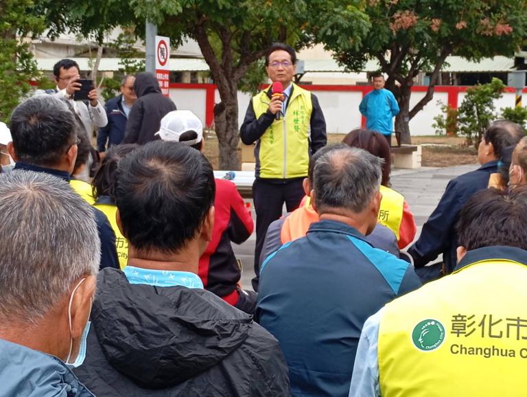 19日上午在彰化扇形車庫停車場旁-後站廣場舉行的為基層村里鄰長發聲的記者會,彰化市73里有近9成左右的里長,在彰化市里長聯誼會總會長吳秋仁帶領之下踴躍出席,也有部分外鄉鎮村里長到場關心並聲援。