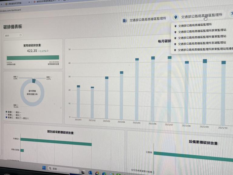 ▲高雄區監理所推動溫室氣體碳盤查計畫,成立專責推動小組。(圖/高雄區監理所提供) 【亞太新聞網/記者高婕/高雄報導】 為響應國家「2050 NET ZERO」淨零排放願景,高雄區監理所主動規劃碳盤查推動計畫,並且成立專責推動小組,依循ISO 14064-1標準完成機關溫室氣體碳盤查作業,成為全國首批主動完成碳盤查的公路監理機關,展現落實永續治理的具體行動。 ▲高雄區監理所及所屬監理站運用平台即時追蹤每月碳排放情形。(圖/高雄區監理所提供) 盤查範圍涵蓋該所位於高雄市鳳山區的所本部,以及屏東監理站、臺東監理站、澎湖監理站和屏東監理站恆春分站等所屬單位。盤查結果顯示,114年度溫室氣體排放總量為747.3919公噸CO₂e,其中以外購電力所產生的間接排放(類別二)占比最高,達95.45%,顯示電力使用為主要減碳關鍵。 ▲馮靜滿所長(右)主持高雄區監理所召開碳盤推動計畫啟動會議並成立推動小組。(圖/高雄區監理所提供) 針對碳盤查結果,高雄區監理所指出,114年全所用電量已較113年減少94,641度,降幅達5.92%。未來將以114年碳盤查數據作為減碳基準年,持續精進用電管理措施,檢視各項電氣設備運作情形,並據以研擬具體減碳策略與行動方案。實施過程中,將透過平台即時掌握每月碳排放變化,強化管理效能。 ▲高雄區監理所辦理碳盤查作業教育訓練,邀集所轄業者參與。(圖/高雄區監理所提供) 所長馮靜滿表示,近年氣候變遷對生活環境帶來的衝擊日益明顯,節能減碳不應只是口號,而是必須落實於日常管理與行動中。隨著環境部自115年起擴大推動事業單位溫室氣體排放盤查登錄制度,高雄區監理所除輔導所轄運輸業者配合政策外,也希望透過本次主動完成碳盤查的示範經驗,拋磚引玉,鼓勵轄內代檢廠、駕訓班及運輸業共同投入減碳行列。 高雄區監理所進一步表示,115年推動減碳行動方案期間,亦將鼓勵同仁取得淨零碳管理師等相關認證,培養跨域專長,並結合不定期辦理的環保快閃活動,邀集鄰里民眾與洽公族群共同參與,持續深化永續理念,讓節能減碳從機關內部擴散至社會各層面,具體展現高雄區監理所推動永續治理的決心。