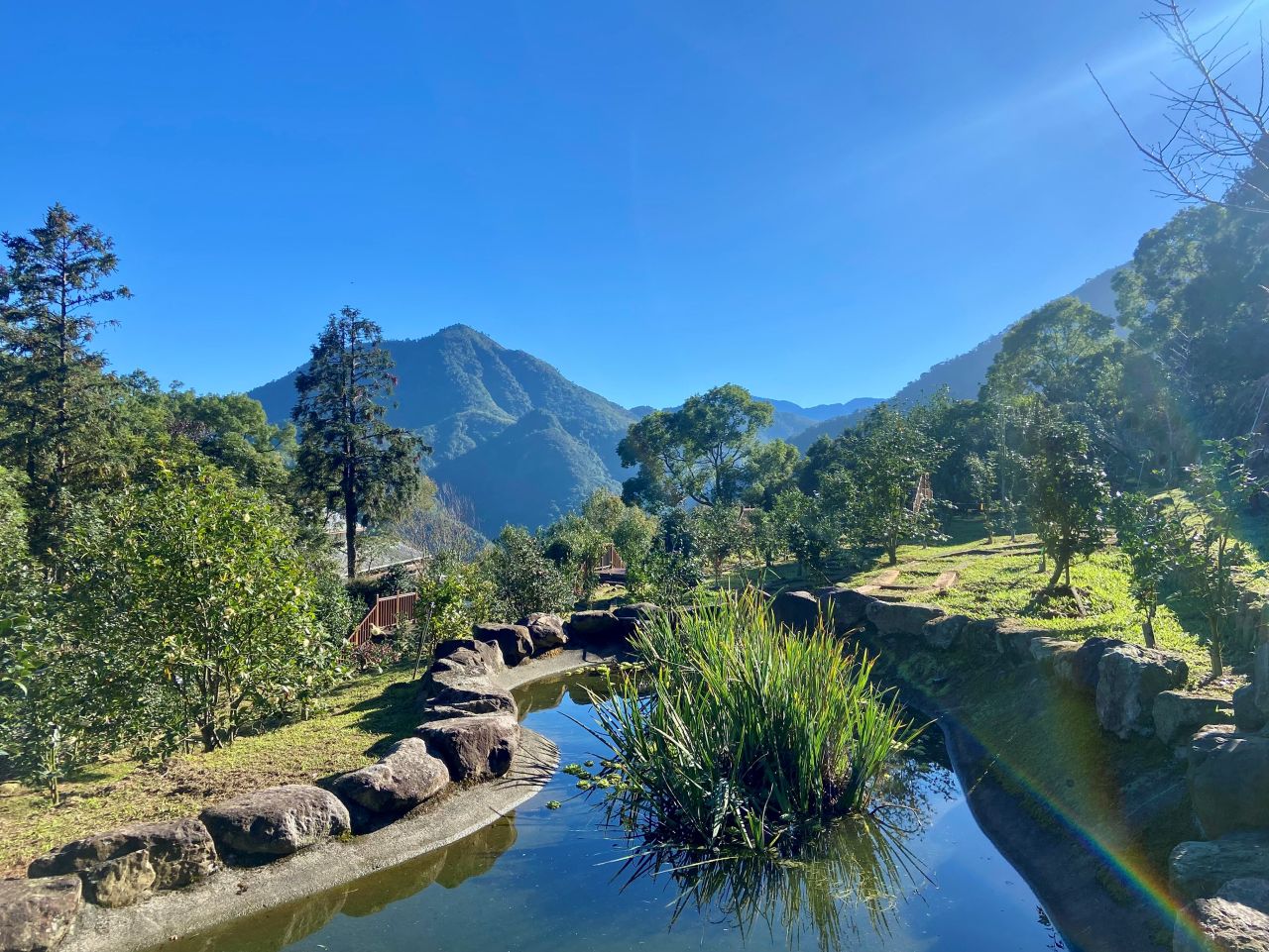 該茶園面積20.24公頃,位於南投縣鹿谷鄉鳳凰村南側,本處清水溝營林區第12林班內,東臨國立鳳凰谷鳥園,南倚鳳凰山脈盡端山麓,西、北俯視凍頂烏龍茶原鄉─鳳凰村、永隆村台地、凍頂山及濁水溪流域城鄉區域,景觀宏偉秀麗;因此本區域素有「東方小瑞士」之美稱。園區海拔高約750m~950m,氣候涼爽,年平均氣溫約18.5℃,年降雨量約2,250mm,屬暖溫帶氣候,動、植物資源豐富,極設置中海拔自然生態教育園區,可供為全國各級學校、社團作為推廣自然生態教育及全體國民休閒觀光旅遊絕佳場所。