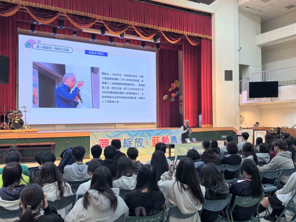 【記者蔡富丞/綜合報導】國家人權博物館人權故事車於29日、30日來到臺中大甲高中,作為2025年「與自由樂讀」校園巡迴活動的最後一站,29日並舉辦「真人圖書館」講座,邀請白色恐怖政治受難者陳欽生前輩與大甲高中師生對談,分享他的生命經驗,引導學生認識及思考歷史事件背後的意義。