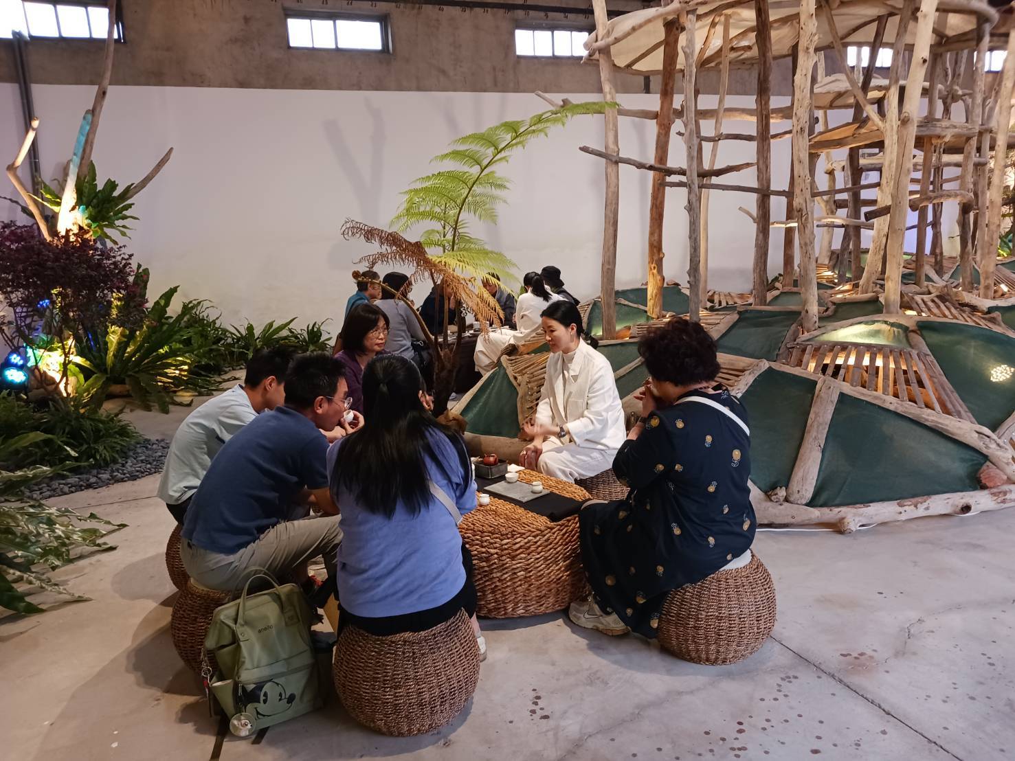 「山之境」由在地藝術家黃文淵老師以漂流木打造神木意象、蘭院子藝術總監趙蘭清老師以微縮阿里山的靈感布置空間,展區以雲霧、茶園與山林生態為靈感,透過光影、空間層次的鋪陳,加入茶香、現場演奏,邀請民眾與茶藝師來一場深刻的對話交流,讓大家從山腳下就能認識嘉義這片孕育好茶的土地。