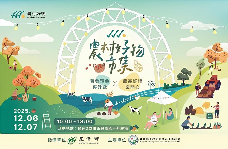 波新聞─陳文標/南投2025農村好物市集將於114年12月6日至7日在國道3號關西服務區熱鬧登場,活動為期2天。這次市集由農業部農村發展及水土保持署號召全臺各地農村社區優質業者共同參與,打造年度最「接地氣」的農特產盛典。現場集結41家農村好物與農村社區業者,販售蜂蜜、果乾、特色零嘴及小農加工品等多元品項,讓旅客停下腳步,一次網羅來自臺灣農村社區的好味道,把農村好物帶回家。「農村好物」自104年推動以來,致力發掘來自全臺農村、具有地方特色與市場潛力的優質產品,強調以臺灣在地農產原料為主,於合法工廠製造、通過食品安全檢驗及產品完整標示等,成為代表安全、美味與值得信賴的標章。這次市集邀集歷屆獲選農村好物及表現亮眼的農村社區夥伴參與,讓旅客能親身感受臺灣農村的質樸與豐饒。為響應農業部「普發現金再升級,農產好禮樂開心」農產聯合行銷活動,這次市集推出多項滿額贈與抽獎活動,鼓勵民眾以行動支持在地農村產業,讓您的荷包和心情同步升級。活動期間,消費滿399元即可領取在地好禮;累積消費滿1,199元,更能參加「搖滾樂」抽獎,有機會獲得「馬太鞍休閒農業區體驗券」及「飛牛牧場二日遊行程套組」等多項好禮。除了市集現場優惠外,亦串聯超過百家農村好店,自12月6日起至12月31日止,於「農村好店」地圖內店家消費滿999元並完成登錄,即可參加抽獎。獎項內容豐富,讓支持農村的每一次消費都能轉化為驚喜回饋。農村水保署表示,希望透過最貼近日常生活的據點,讓更多旅客看見農村品牌與農村社區產業的努力,進一步支持臺灣農村,帶動農村經濟循環。誠摯邀請民眾於12月6日、7日行經國道3號時停靠關西服務區,走進農村好物市集,共同感受農村好物的魅力,12月6日至31日前往農村好店,品味在地風土。邀您一起走進農村好物市集,感受臺灣農村社區產業的用心!並參與「普發現金再升級,農產好禮樂開心」抽大獎帶回去。農村好物市集●地點:國道3號關西服務區(新竹縣關西鎮東安里11鄰上三屯14號)●市集日期:114年12月6日至7日上午10時至下午6時更多活動資訊請上「農村好物」FB粉絲專頁:https://www.facebook.com/GoodRuralProduct農村好店●活動期間:114年12月6日至31日●農村好店地圖:https://lihi.cc/kaG6Z