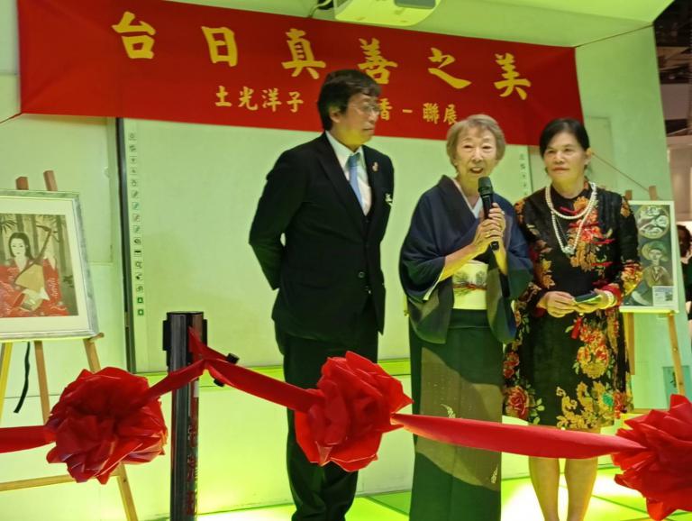 因緣際會在台灣藝術聯盟台日特使黃麗香女士的安排下,延伸出一場完美的台日交流畫展,並於2025年11月10日(星期一)上午11點,在台灣玻璃館二樓人生舞台舉行開幕剪綵,展開為36天的展期。外交部長林佳龍聞訊後,特別指派夫人廖婉如女士及中辦翁瑛敏處長親臨現場主持剪綵。