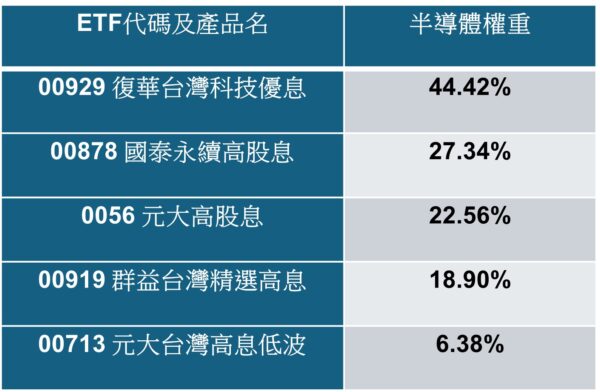 五大高股息ETF 持有半導體權重
