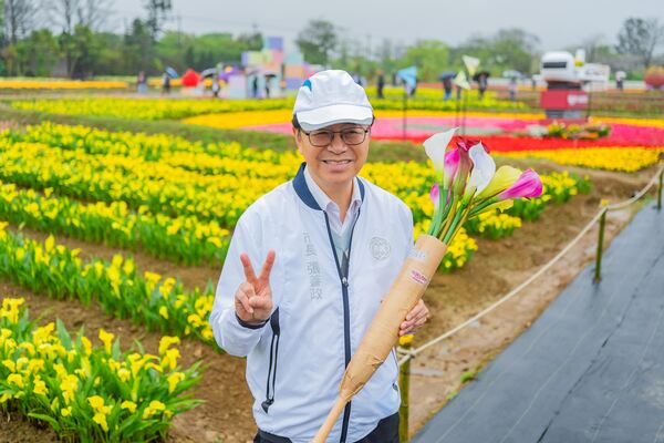 【記者葉志成 /桃園報導】桃園市長張善政27日上午前往大園區,出席「2026桃園彩色海芋季開幕式」。張市長表示,活動將自今日起至4月12日於大園溪海休閒農業區盛大舉行。今(115)年活動規模顯著提升,種植逾6萬5,000株彩色海芋,全區花卉總數更突破20萬株,整體花海景緻繽紛壯麗,呼籲全臺鄉親把握未來兩週花期前來賞花。