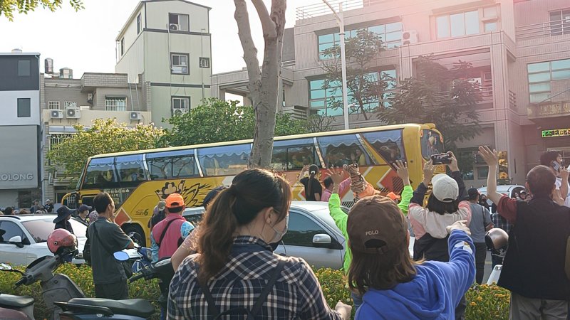 在熱鬧的遶境隊伍中,除了虔誠的信眾,現場更出現了一支身著鮮黃色制服的亮眼隊伍。根據現場畫面顯示,來自「高雄市義消總隊特種搜救隊」的成員們也現身壽天宮前。