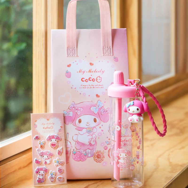 除聯名紙杯外,品牌同步推出多款限定周邊。消費者於門市臨櫃消費任一杯飲品即可加$399購得Tritan耐熱材質、安全無毒的冷水杯,隨杯附美樂蒂立體吊飾與粉Q掛繩,超可愛又實用,喝什麼都開心,手搖控女孩必收!週邊數量稀有,限臨櫃消費可加購。